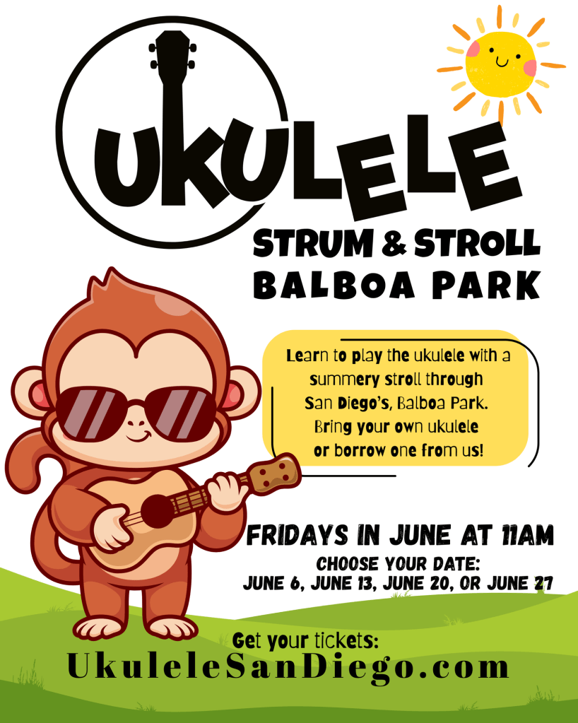 Friday, June 6 at 11am. Ukulele Strum & Stroll – Balboa Park.